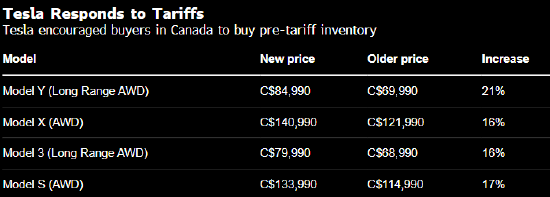 特斯拉公司正在提高其在加拿大的汽车售价全国股票配资公司排名, 并鼓励买家在对美国制造的汽车征收反制关税之前抢购进口汽车。